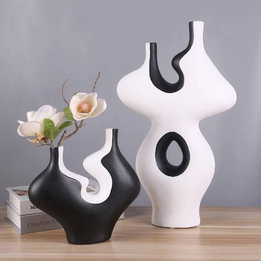 Abstract White & Black table Vase- Set of 2