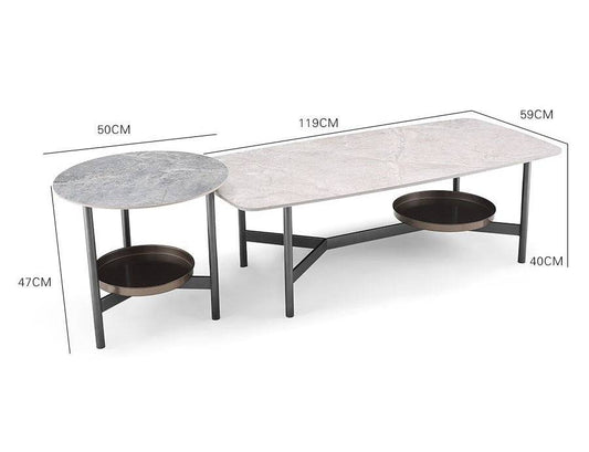 Airy Japanese Style Center Table - Plain luxurious marble (Set of 2)