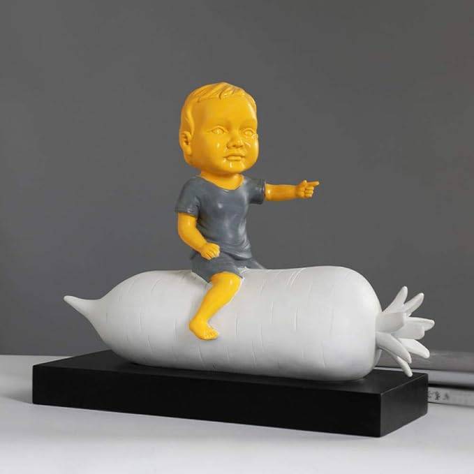 This resin Cartoon Pointing Boy table decor brings whimsy and personality to any room. The playful design showcases a young boy pointing with a mischievous expression, adding charm to your home or office. Crafted from high-quality materials, this decor piece is both durable and long-lasting, making it a delightful addition to your space.